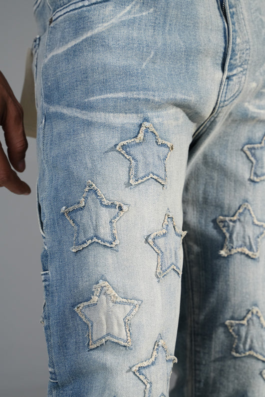 Stars Flaired Jeans Sand Blue